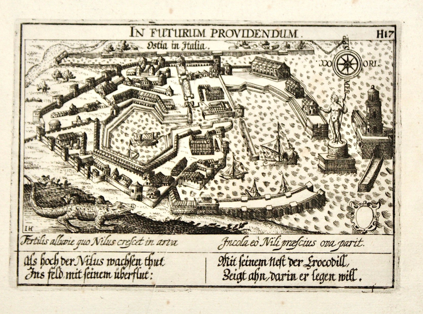 Incisione in rame, 100x145. Bella veduta generale della città, tratta da "Sciographia cosmica" e "Thesaurus philopoliticus". Ottimo esemplare ben impresso ad ampi margini.
