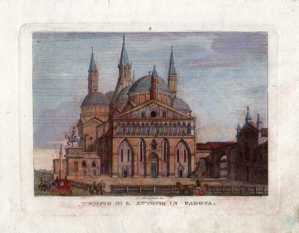 PADOVA - "Tempio di S. Antonio in Padova". G. Rosaspina inc. Piccola veduta de Basilica del Santo.