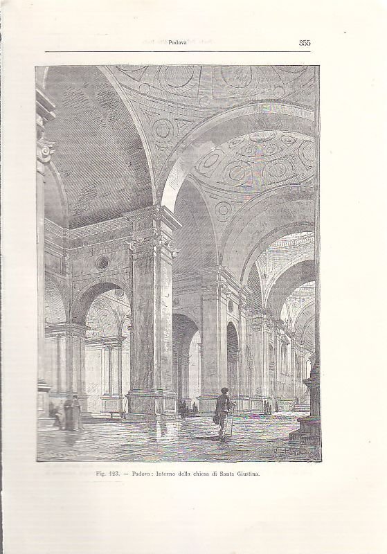 Padova Interno Della Chiesa Di Santa Giustina incisione originale 1902 antica