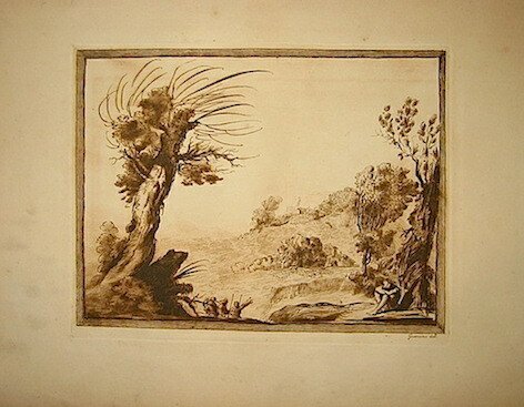 Incisione originale su rame all’acquaforte e bulino in color seppia (cm. 29x23 più ampi margini bianchi) da un dipinto di Gio. Francesco Barbieri detto il Guercino. Carta filigranata. Ottimo esemplare.