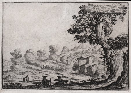 Acquaforte, 1638, nell’immagine, in basso a destra “Jac. Callot fe.” Ottimo esemplare, impresso su carta coeva, con margini, in ottimo stato di conservazione. Allievo di Giulio Parigi, l'artista pisano si firmava Ercole Bazicaluva, Bazzicaluna, Bazzicaluve, e Bazzicalune. I suoi disegni di paesaggio suggeriscono quel sentimento toscano di piacere per la vita di campagna. Nel 1638 realizzò acqueforti con una serie di soggetti marini e paesaggi che lui stesso descrisse, nella dedica a Ferdinando II de’ Medici, Granduca di Toscana, come “terre straordinarie e immaginarie”. Il frontespizio dell’insieme di dodici tavole era sconosciuto a Bartsch, che menziona solo un riferimento ad esse nel dizionario di Heineken. The Illustrated Bartsch riproduce uno stato successivo di questo foglio che ha l'indirizzo di De Rossi. Questo permette di identificare il set a p. 87 del catalogo della tipografia De Rossi del 1735 (A. Grelle Iusco p. 314) come "Paesi con la fama, di Ercole Bazicaluve in 12 mezzi fogli reali: bajocchi 30". Sebbene questi siano lavori giovanili si presentano comunque come elegantemente composti e bilanciati, e ricordano gli spazi luminosi e la soffice vegetazione che troviamo anche nelle opere di Stefano della Bella e Filippo Napoletano. Poche incisioni recano per esteso il nome e cognome dell'artista; data la scarsa produzione, le sue stampe divennero presto rare. Per le sue molte cariche, sia come ciambellano di corte a Innsbruck, sia come maestro di campo dell'arciduca di Firenze e castellano dell'antica fortezza di Livorno e governatore di quella di Siena, si dedicò all'arte più come amatore che come vero professionista. Etching, 1638 circa, lettered lower right, in the image ' “Jac. Callot fe.” Very good example, printed on contemporary paper, with thin margins, in perfect condition. The etcher Ercole Bazicaluva, also called Fiorentino, was taught by Giulio Parigi in Florence and was a fellow student of Jacques Callot, by whom he was greatly influenced. He produced a small body of etchings, typical of which are an unpolished, down-to-earth technique and a pronounced decorative effect. ' The artist from Pisa signed himself Ercole Bazicaluva, Bazzicaluna, Bazzicaluve, and Bazzicalune. His landscape drawings suggest that Tuscan feeling of pleasure for country life. In 1638 he produced etchings with a series of marine subjects and landscapes that he described, in his dedication to Ferdinando II de' Medici, Grand Duke of Tuscany, as 'extraordinary and imaginary lands'. The frontispiece to a set of twelve plates, that was unknown to Bartsch, who only mentions a reference to them in Heineken's dictionary. The Illustrated Bartsch reproduces a later state of this sheet in Boston, which has the address of Rossi. This enables the set to be identified on p. 87 of the 1735 Rossi catalogue (A. Grelle Iusco p. 314) as 'Paesi con la fama, di Ercole ' Bazicaluve in 12 mezzi fogli reali: bajocchi 30'. Although these are early works, they are nevertheless elegantly composed and balanced, and recall the luminous spaces and soft vegetation that we also find in the works of Stefano della Bella and Filippo Napoletano. Few of the engravings bear the artist's full name and surname; given the limited production, his prints soon became rare. Cfr.