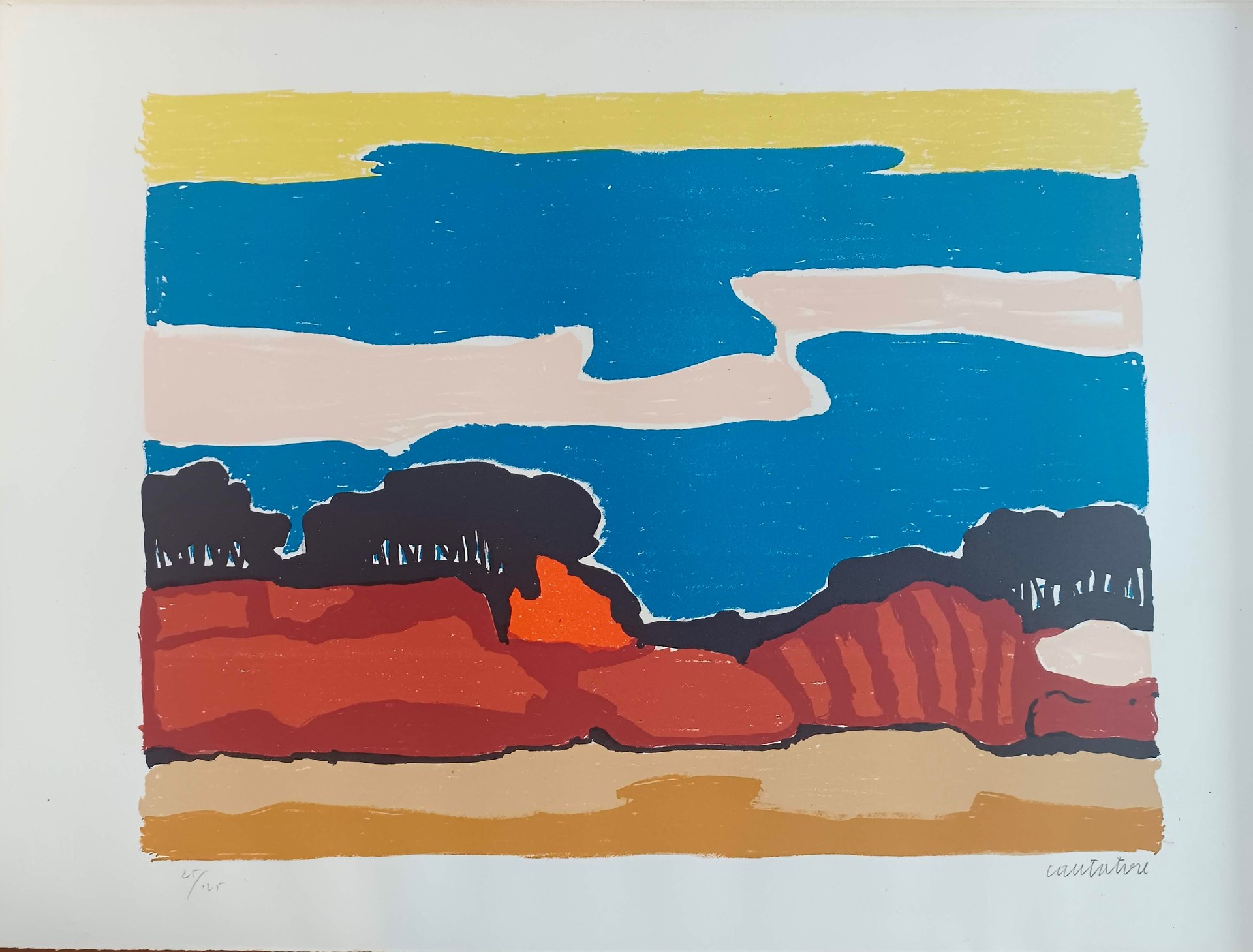 Il soggetto è riconducibile ai paesaggi che l'autore ha dipinto negli anni Settanta. Firma e numerazione a matita 25/125 nel margine inferiore. Filigrana: M con croce.
