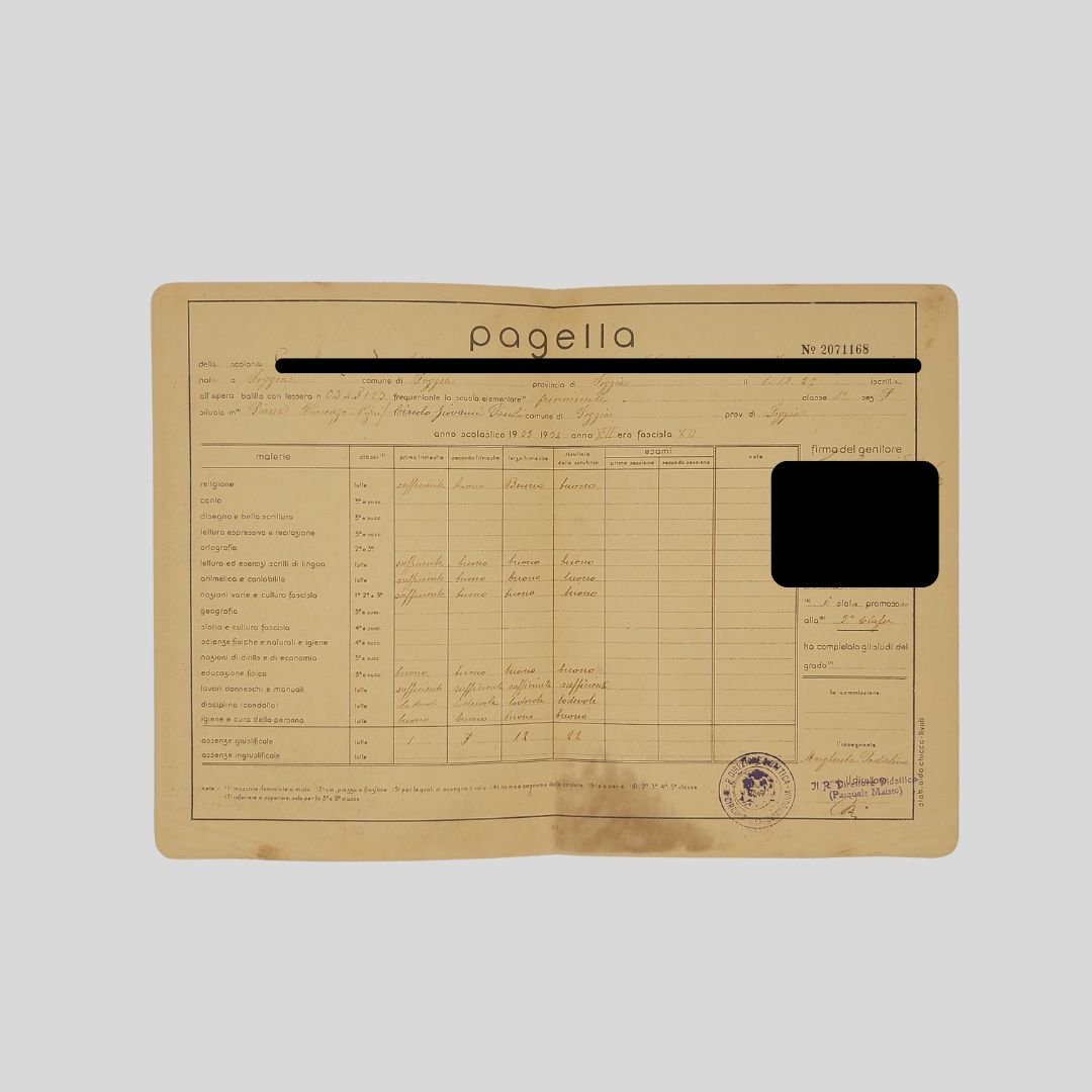Pagella Balilla. Ministero dell’Educazione Nazionale Opera Balilla.