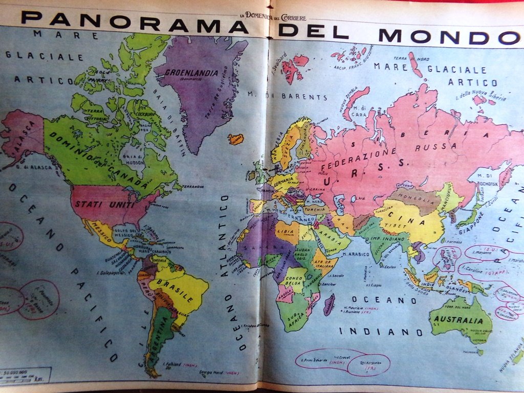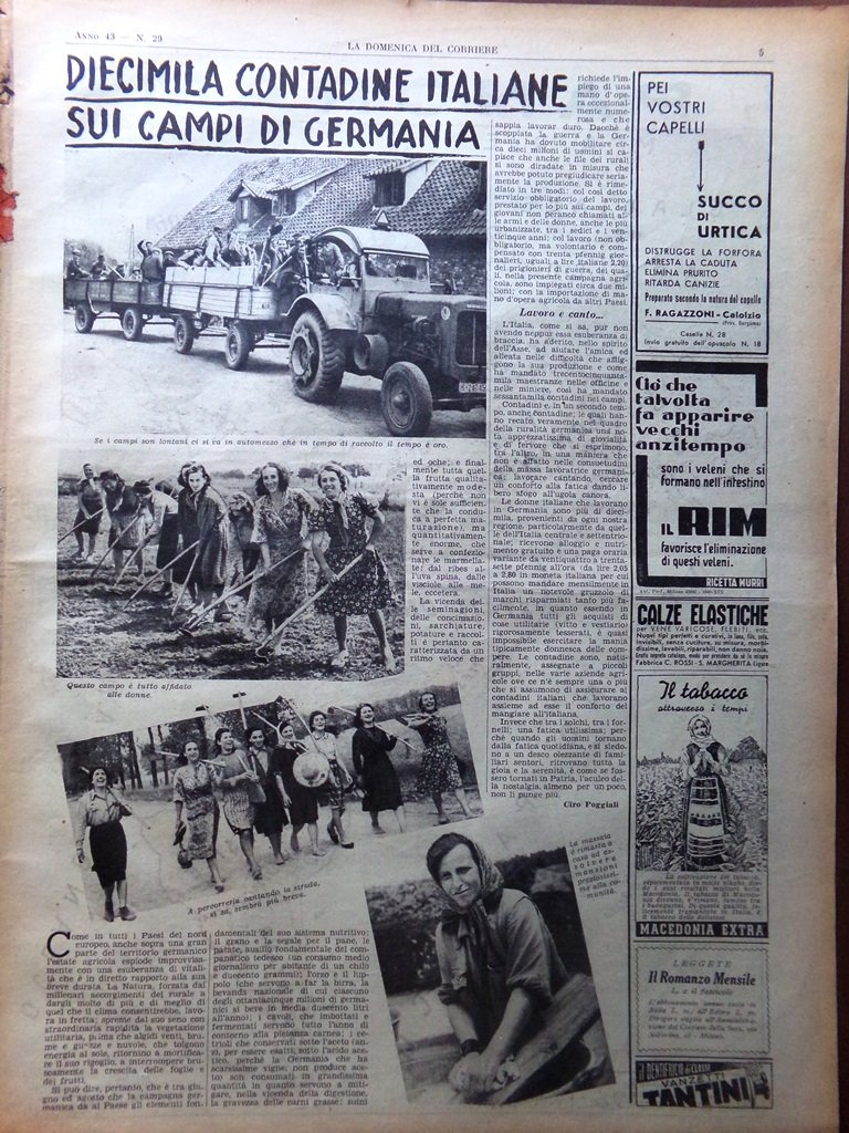 Pagina Anni 40 WW2 Contadine Italiane Campi Germania Panorama Mappa del Mondo