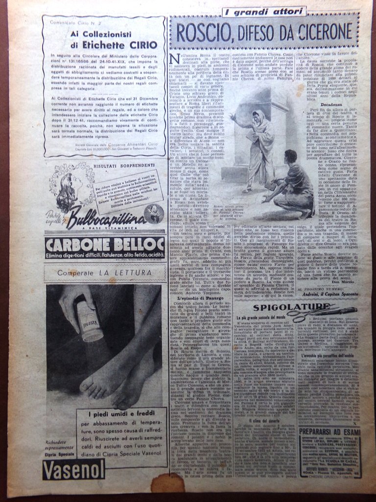 Pagina Anni 40 WW2 Roscio difeso da Cicerone Grandi Attori Don Marzio Vasenol