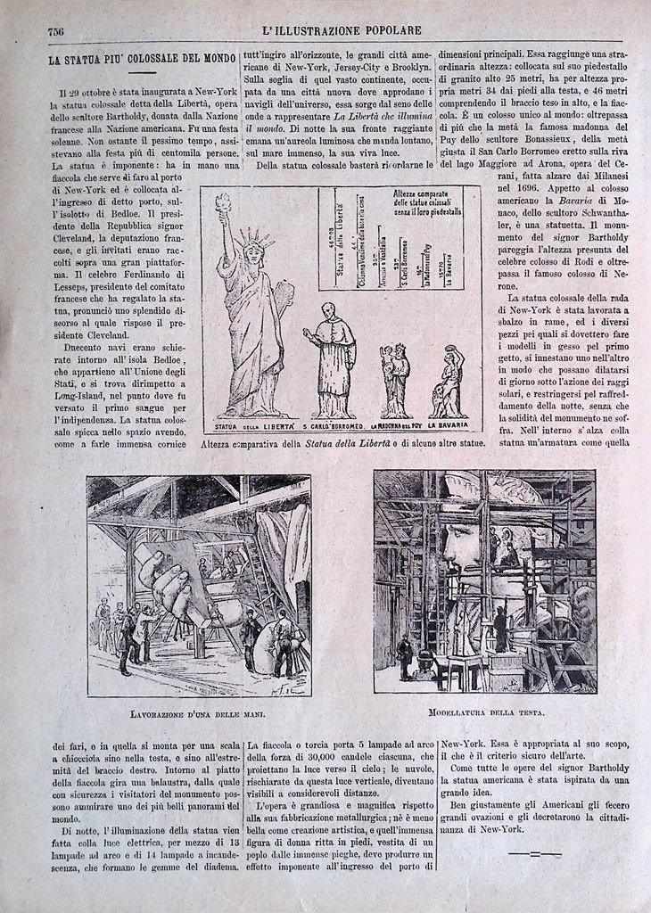 Pagina del 1886 Inaugurazione Statua della Libertà di New York
