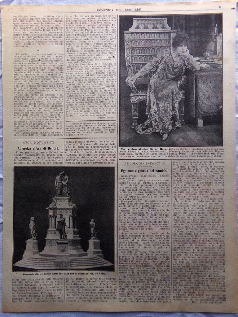 Pagina del 1911 Sarah Bernhardt Monumento Eroica difesa Belfort Bambini Egoismo