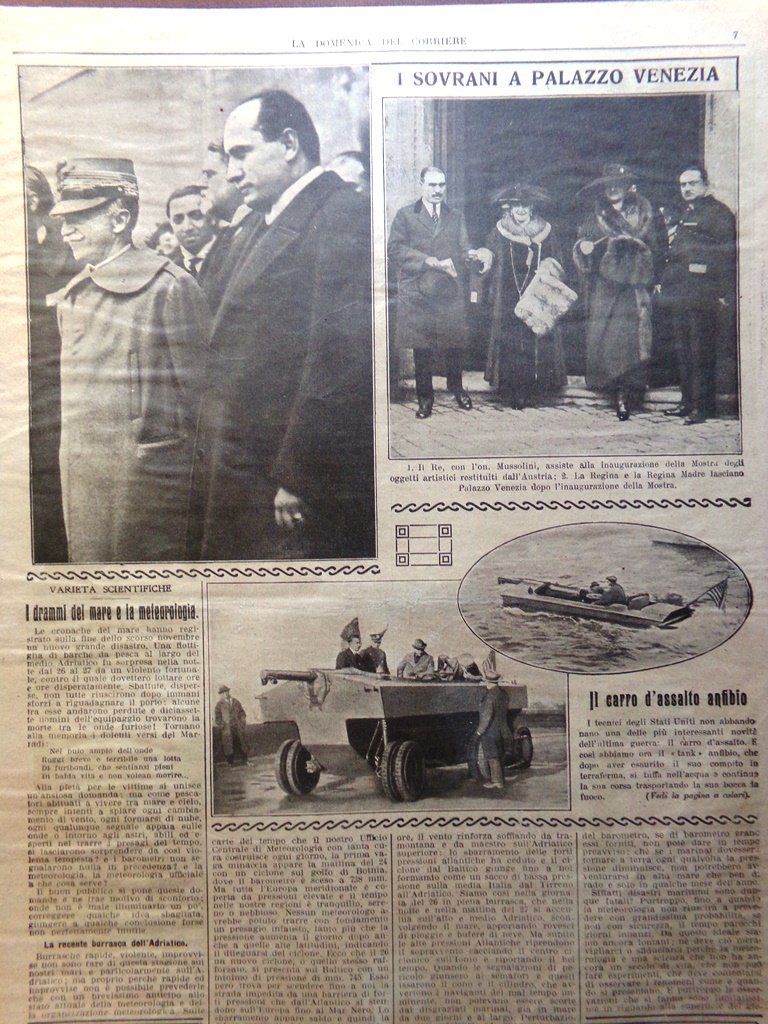 Pagina del 1923 Sovrani a Palazzo Venezia Carro Anfibio Lotta Studenti Glasgow