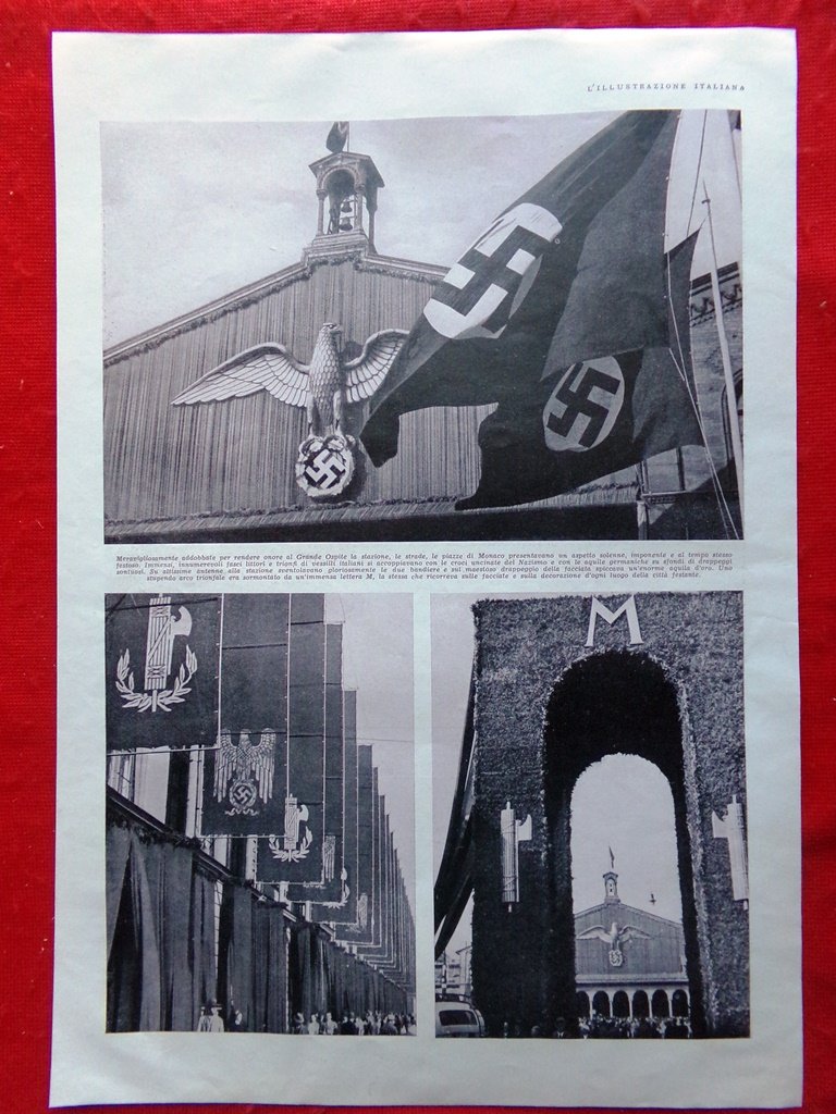 Pagina del 1937 Mussolini in partenza Germania Federazioni Piazze Monaco Duce