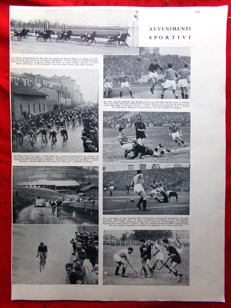 Avvenimenti sportivi - Ciclismo Milano-Torino, Calcio Torino-Lazio, Bologna-Novara, Ippica Gran Premio Milano