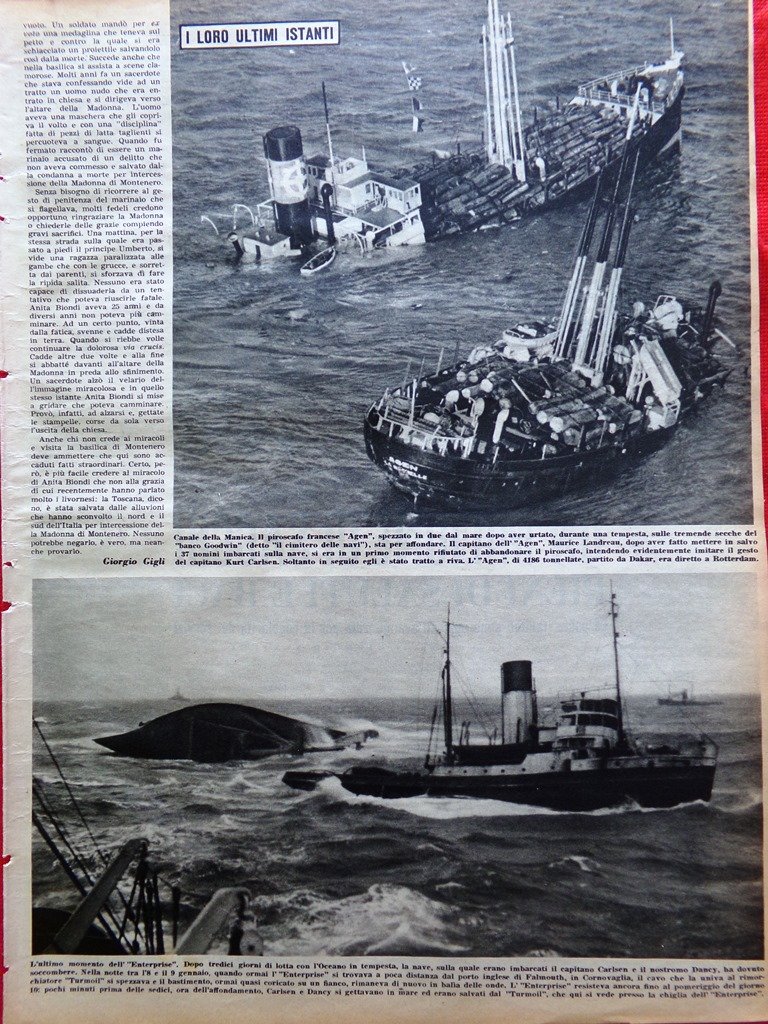 Pagina del 1952 Affondamento Piroscafo Francese Agen Enterprise Tempesta