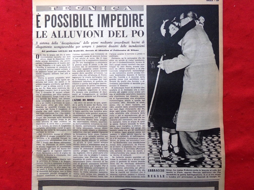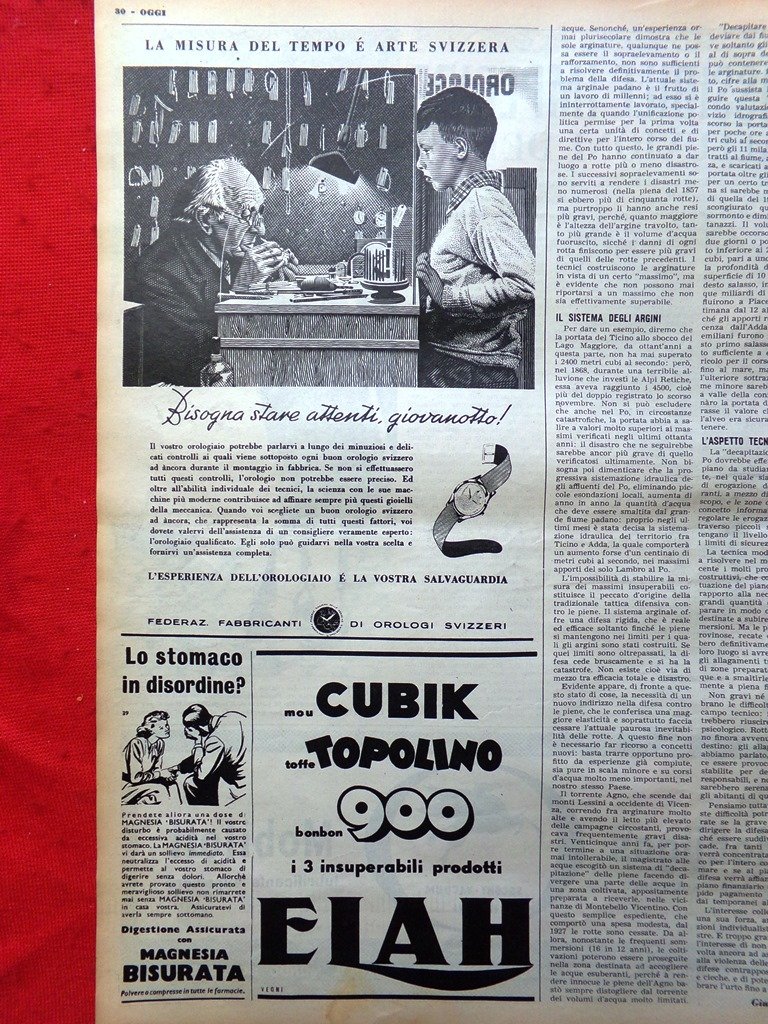 Pagina del 1952 Alluvioni del Po Regina Federica Pubblicità Orologio Svizzero