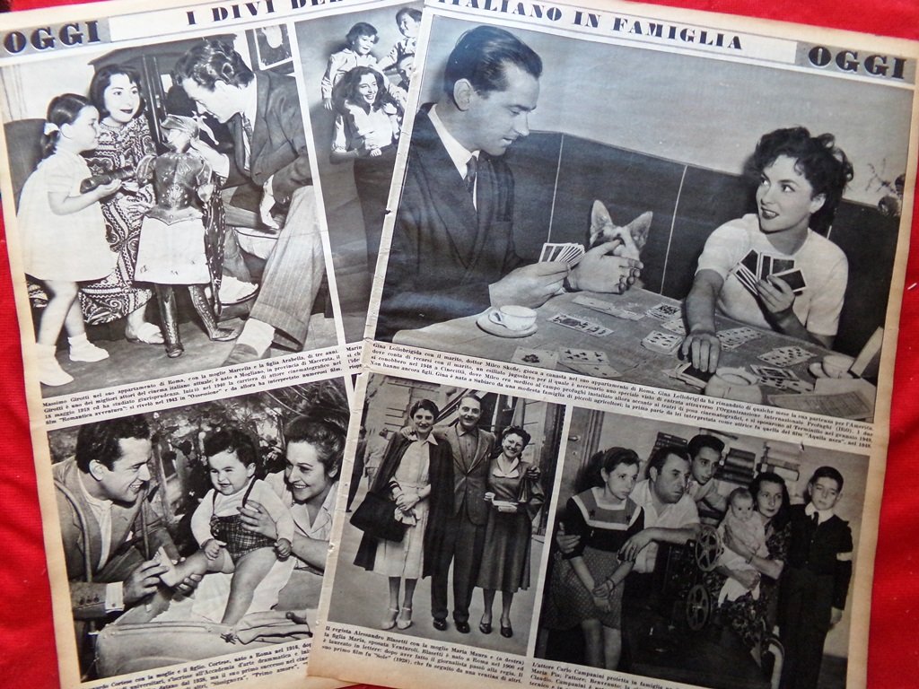 I divi del cinema italiano in famiglia: Massimo Girotti, Marina Berti, Gina Lollobrigida, Alessandro Blasetti, Carlo Campanini, Gino Cervi, Leonardo Cortese