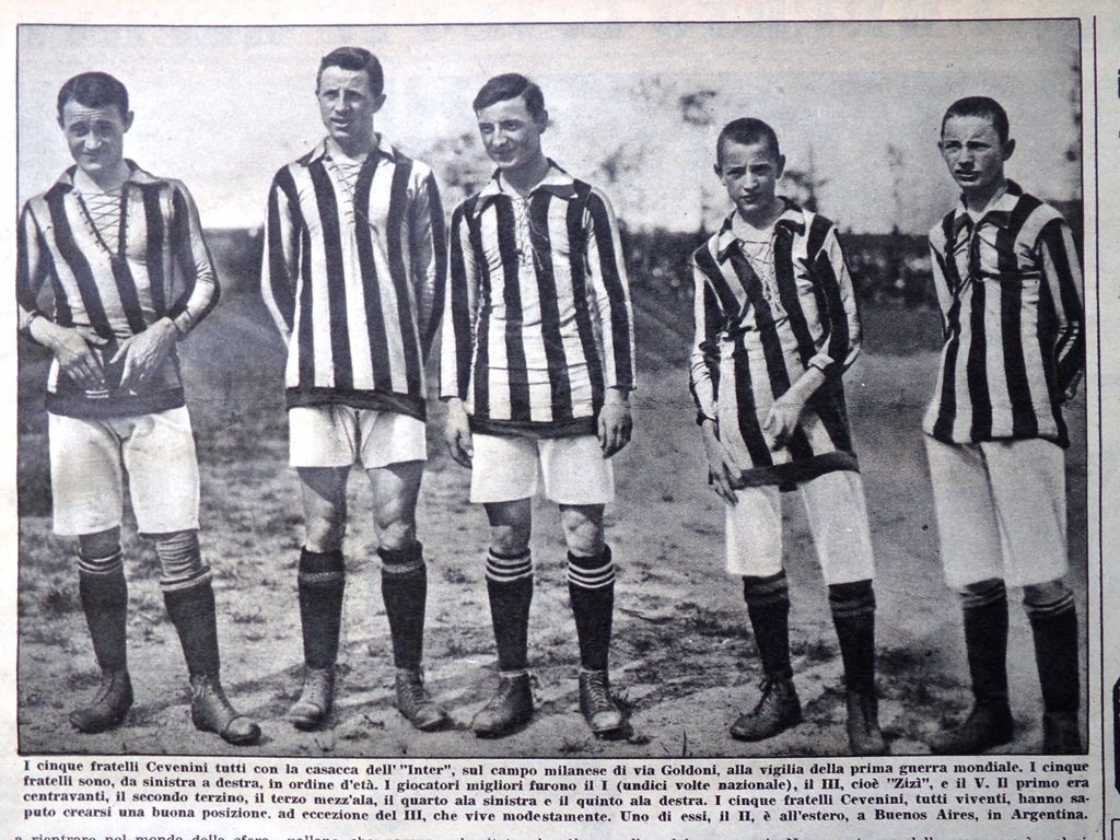 Fotografia - I cinque fratelli Cervenini con la casacca dell'Inter nel campo di Via Goldoni alla vigilia della prima guerra mondiale
