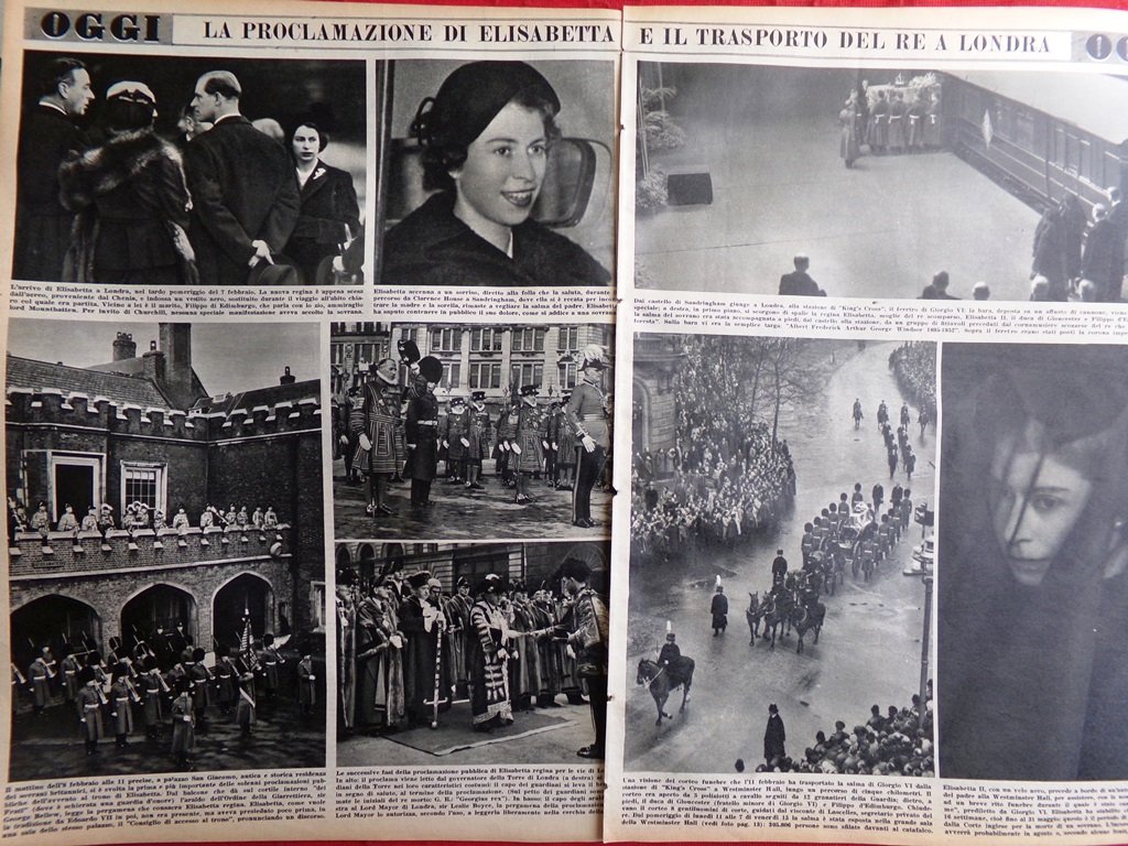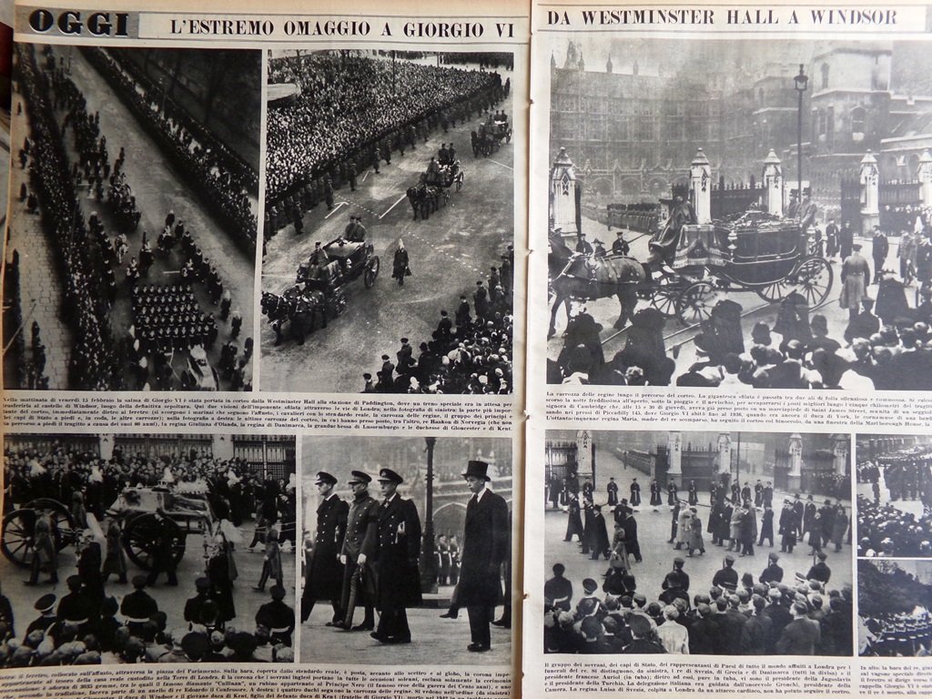 Pagina del 1952 Proclamazione Elisabetta II Regina Funerali Giorgio VI Windsor