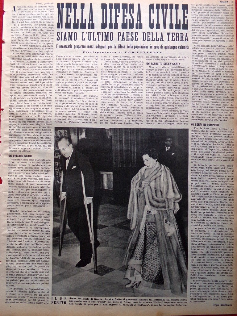 Pagina del 1952 Re Paolo di Grecia Gaetano Marzotto Re della Lana Difesa Civile