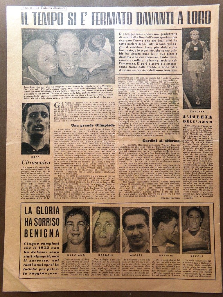 Pagina del 1953 Mare Livorno Coppi Zatopek Colò Marciano Ascari Sacchi Dordoni
