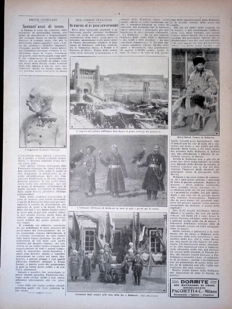 Pagine del 1907 Francesco Giuseppe Principato Bukhara Cappella di Lutzen Fanfara