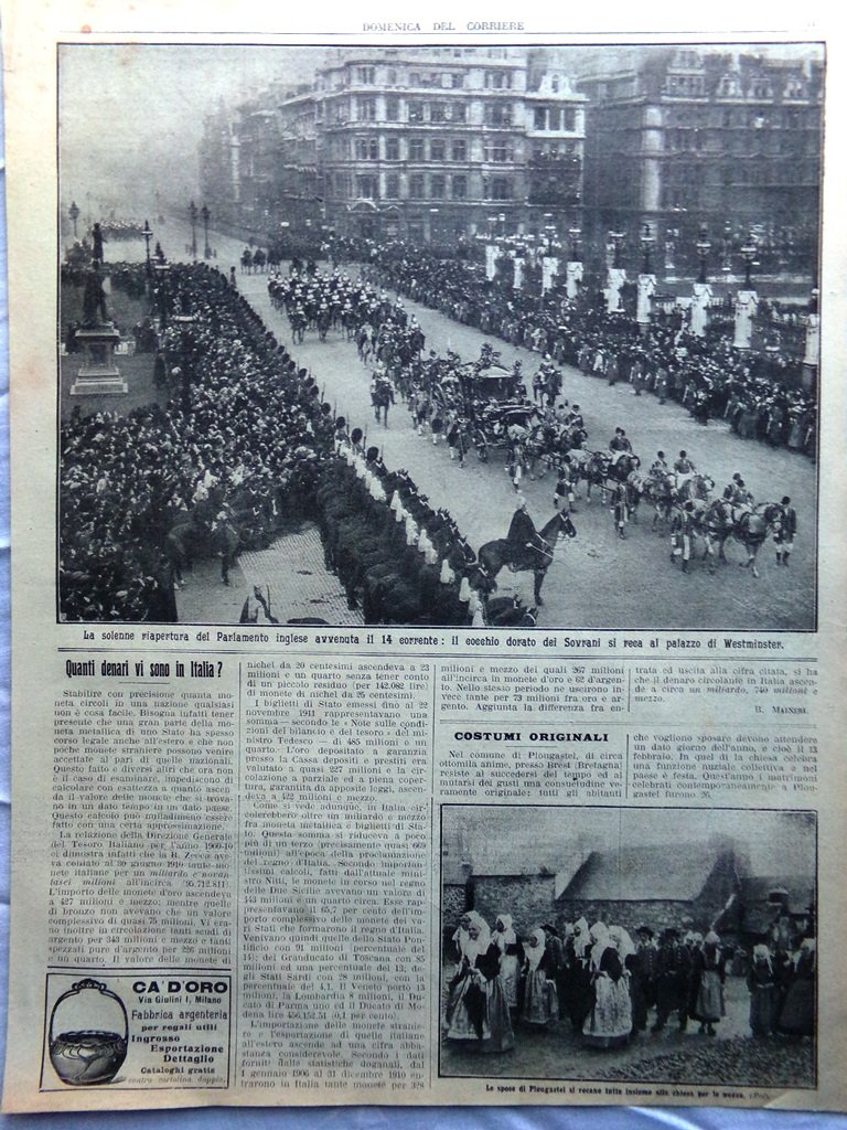 Pagine del 1912 Costumi Plougastel Riapertura Parlamento Inglese Denari Italia