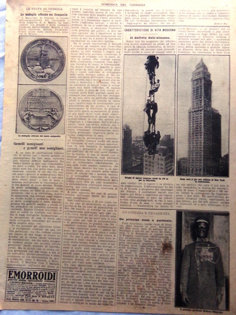 Pagine del 1912 Delirio Altezza Principe Behanzin Medaglia del Campanile Gemelli