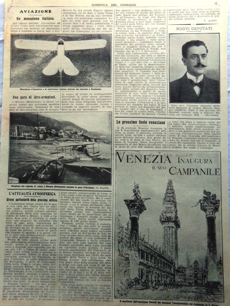 Pagine del 1912 Monoplano Italiano Feste Veneziane Giuseppe Albanese Monaco Idro
