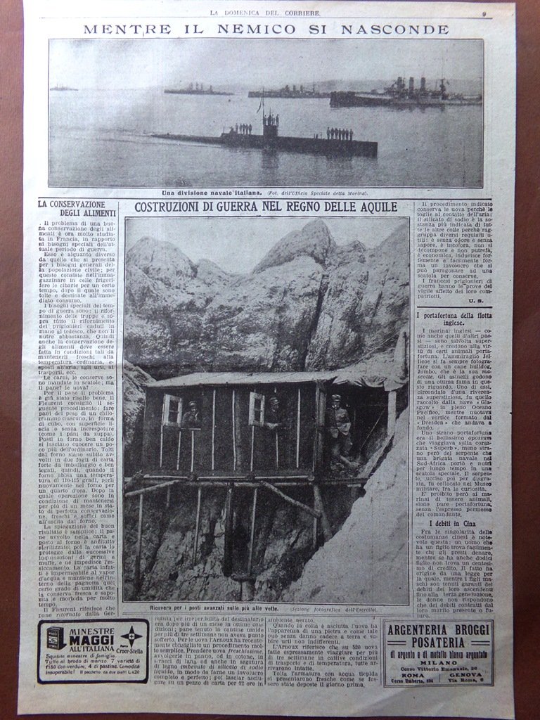 Pagine del 1915 WW1 Costruzioni Guerra Messa Natale Combattenti Alpini Alimenti