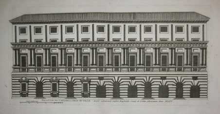 Palatium DD. Caffarellorum De Valle opera admirandi artificis Raphaelis Santij de Urbino fabricatum Anno MDXV