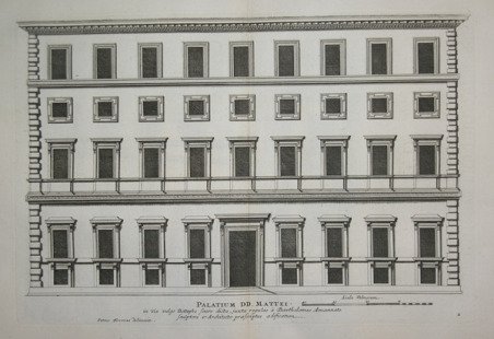Palatium DD. Mattei in Via vulgo Botteghe scure dicta,juxta regulas a Bartholomeo Ammannate sculptore e Architecto praescrip