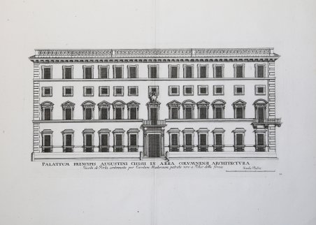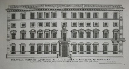Palativm Principis Augustini Chisii in area Colvmnensi architectura Jacobi de Porta continuata per Carolum Madernum, patrata