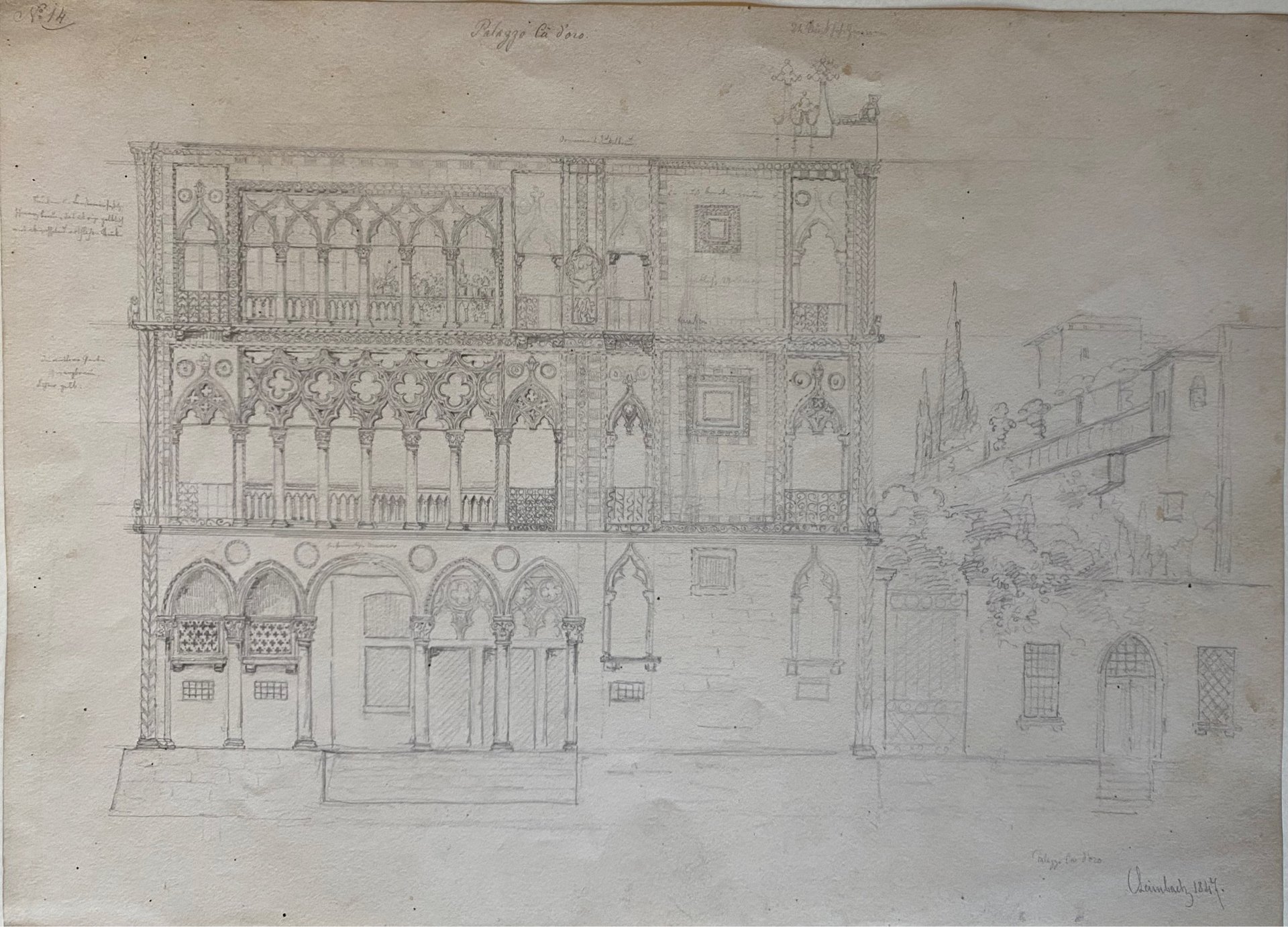 Nel foglio l'artista rappresenta la facciata del palazzo veneziano noto come Ca d'Oro. Attraverso una netta linea di contorno e una minuzia nella descrizione dei particolari l'autore ricostruisce la facciata tardo gotica che si riflette sulla riva sinistra del Canal Grande. Percepiamo l'asimmetria dell'edifico, i pieni e vuoti che si susseguono. A sinistra il portico del piano terra che veniva utilizzato per attraccare le gondole, mentre nei piani superiori troviamo un doppio ordine di logge a sei arcate. A destra invece l'edificio è più semplice, contraddistinto da piccole finestre quadrate che rimandano alle forme rinascimentali.