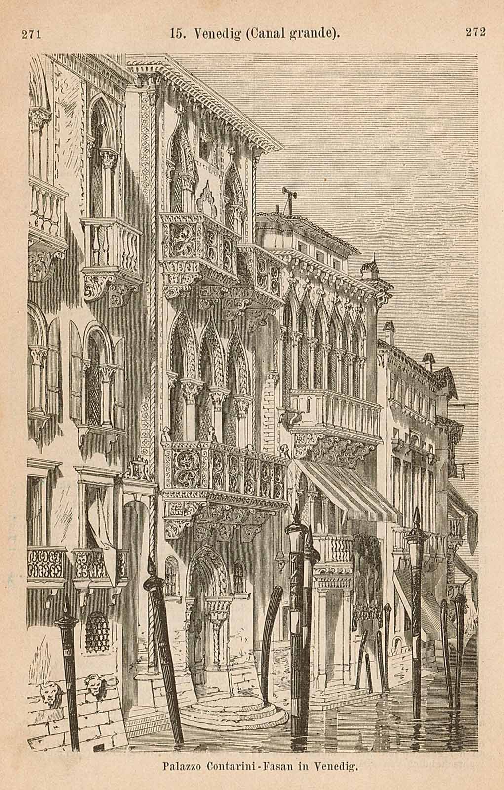 Veduta esterna del Palazzo Contarini - Fasan a Venezia. Opera tratta da "Ober - Italien" di Dr. Th. Gsell-Fels,