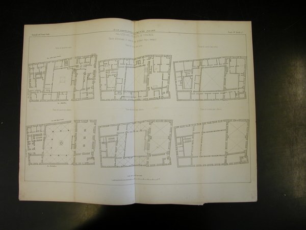 Quattro tavole in formato cm.40x53,5, raffiguranti: "Piante dimostranti lo stato di esso prima e dopo i restauri"; "Elevazione odierna e elevazione antica"; "Sezione trasversale e longitudinale"; "Particolari di lavori eseguiti". le quattro tavole. Codice libreria 110372.