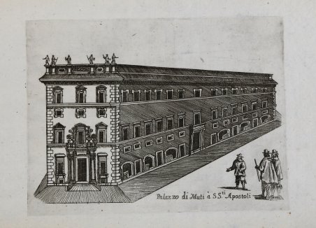 Veduta tratta dalla rarissima serie Palazzi divesi nel'Alma Cità di Roma et altre, pubblicata per la prima volta a Roma: ad instanza di Giombattista de Rossi in piazza Nauona, 1638. La raccolta venne successivamente ristampata nel 1640, 1650 e nel 1655 sempre a cura della tipografia De Rossi e anche nel 1773 da Carlo Losi. Esemplare dell'edizione originale del 1638. L'opera comprende incisioni di famosi palazzi romani e non, incluse diverse vedute della Piazza San Marco di Venezia, la Certosa di Pavia, il Santuario di Loreto. Acquaforte e bulino, in ottimo stato di conservazione. View taken from the very rare set Palazzi divesi nel'Alma Cità di Roma et altre, published for the first time in Rome: ad instanza di Giombattista de Rossi in Piazza Nauona, 1638. The collection was subsequently reprinted in 1640, 1650 and 1655 always by the De Rossi typography and also in 1773 by Carlo Losi. Example of the original edition of 1638. The work includes engravings of famous palaces in Rome and elsewhere, including several views of Piazza San Marco in Venice, the Certosa of Pavia, the Sanctuary of Loreto. Etching and angraving, in excellent condition. Cfr.