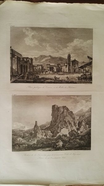 Veduta pubblicata nel “Voyage Pittoresque a Naples et en Sicile". Incisione in rame, ottimo stato di conservazione. Sicile. Dimensioni: 50 cm (lunghezza) x 33,5 (larghezza).