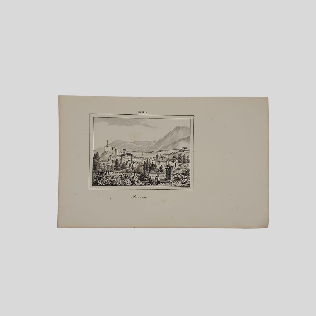 Litografia su disegno di Dolfino, 1852, cm 25,3×15,8 (tavola). In buone condizioni. Tratta da: Cesare Malpica, Panorama dell’universo, Napoli, Stab. dell’Ateneo 1852. Cesare Malpica. Prima avvocato poi insegnante infine giornalista, deve la sua fortuna letteraria – sebbene non univocamente giudicata dalla critica – proprio al reportage. Per lo più concentrate tra gli anni Quaranta e Cinquanta dell’Ottocento, escono le sue impressioni di viaggiatore dedicate a Venti giorni a Roma, Un mese negli Abruzzi: impressioni, ma anche Dal Sebeto al Faro: impressioni di un viaggio nelle Calabrie, e ancora Toscana, Umbria e Magna Grecia per arrivare, nel 1847, a una monografia dedicata alla Basilicata.