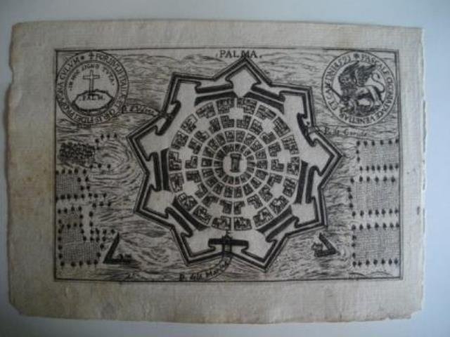 Francesco Bertelli, Padova, 1629. Pianta planimetrica della città tratta dal “Theatro delle Città d’Italia” di Pietro Bertelli, stampato dal figlio Francesco. Incisione in rame, b/n, cm 1 x 1 circa (alla lastra).