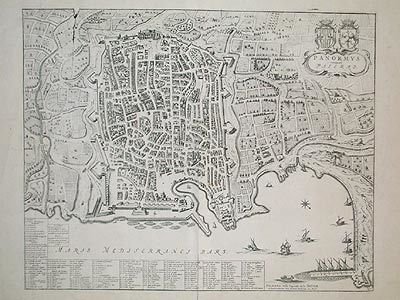 Incisione in rame, mm385x480. Pianta prospettica da "Novum Italiae Theatrum ". Mortier, editore attivo ad Amsterdam ad inizio secolo, ristampò il "Theatrum Civitatum…Italiae" di Blaeu del 1663 aggiungendovi un quarto volume, relativo a nord Italia e Toscana. Buon esemplare con lievi pieghe.