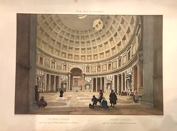 Litografia originale (cm. 36x25 più ampi margini bianchi) tratta dall’opera ‘Rome dans sa Grandeur’. Ottimo esemplare. Raffinata coloritura all’acquerello.
