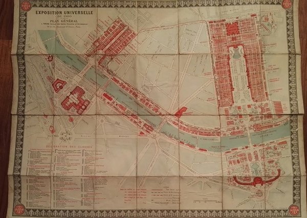 Monrocq (Imprimerie), imprimeur. Exposition universelle de 1900. Bellissima pianta del 1900 di Parigi. Dimensioni: 74 cm x 59 cm.