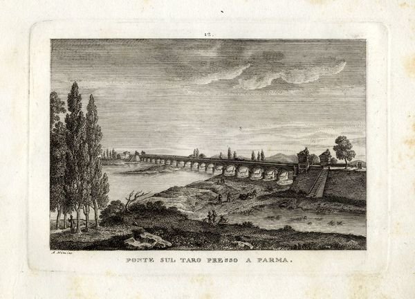 PARMA - "Ponte sul Taro presso a Parma". A. Nini inc. Graziosa vedutina prospettica.