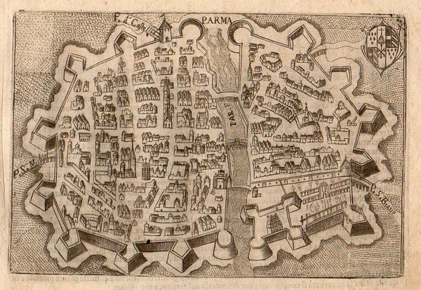 Incisione in rame, f. 18×12 cm. ca. In: BERTELLI, Pietro – Teatro delle città … Vicenza