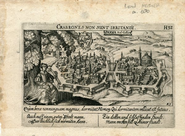 Incisione su rame di Parma. Esemplare raro in buone condizioni. Dimensioni: 13 x 18.