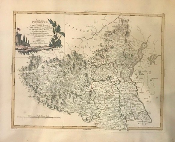 Parte del Piemonte, che contiene il Ducato di Aosta, il Contado del Canavese, la Provincia di Biella, la Valle di Sesia, la Signoria di Vercelli, e l’Alto e Basso Novarese, tratta dalla carta dell’Ingegnere Borgonio