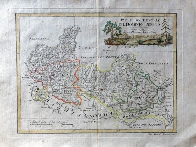 Siena, 1794. Incisione in rame all'acquaforte, colore d'epoca, cm 25 x 33,8 (alla lastra) più margini. Carta tratta dall' “Atlante Geografico” dell’Abate Bartolomeo Borghi”, pubblicato in Siena dal Pazzini Carli tra il 1798 e il 1800 e poi a Firenze nel 1819. L'Atlante, corredato da brevi descrizioni storiche, politiche, civili e naturali, che introducono le carte relative ai territori afferenti a ciascun Impero o Regno illustrato, rispecchia il nuovo assetto geo - politico attuato dal Congresso di Vienna. Se nell' “Atlante Novissimo” di Antonio Zatta (Venezia 1779 - 1785) illustrato e accresciuto sulle osservazioni e scoperte fatte dai più celebri e più recenti cartografi, il contributo fu ancora legato all'area toscana, l'Atlante del Borghi spaziò dalle province del sud-est dell'Inghilterra, al Regno di Danimarca, alla Romania. Bartolomeo Borghi (Monte del Lago, 1750 – Firenze, 1821) è stato uno scrittore, matematico e geografo italiano. Foxing, peraltro buono stato.
