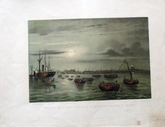 Partenza della prima flottiglia di Garibaldini dal faro di Messina.