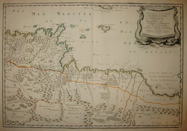 Partie de la Coste de Barbarie en Africque ou sont les Royaumes de Tunis, et Tripoli.