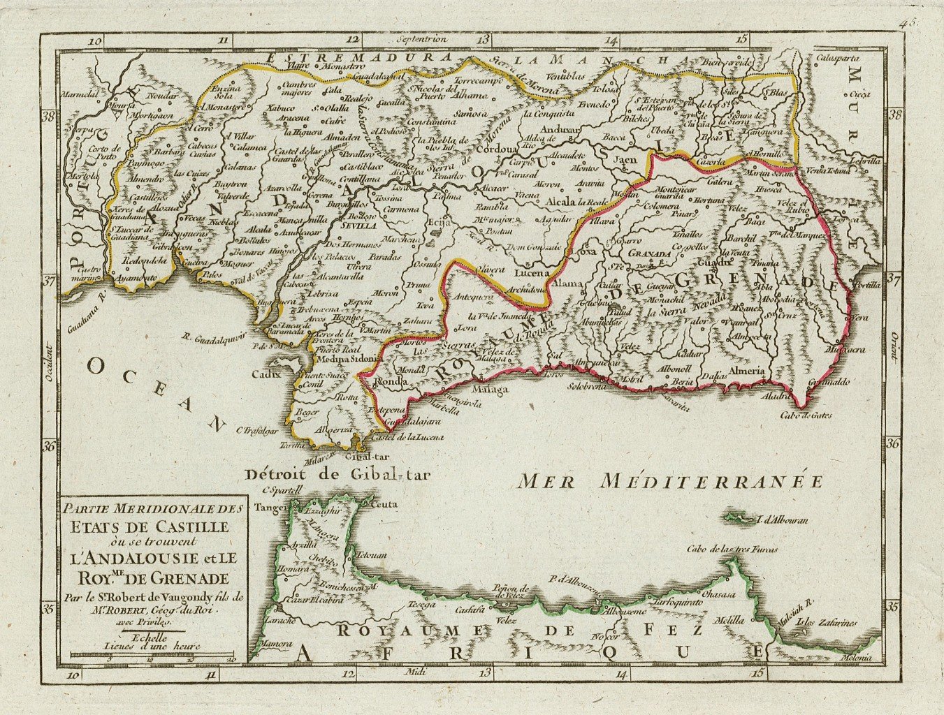 Carta geografica della Spagna meridionale e di un tratto di costa africana