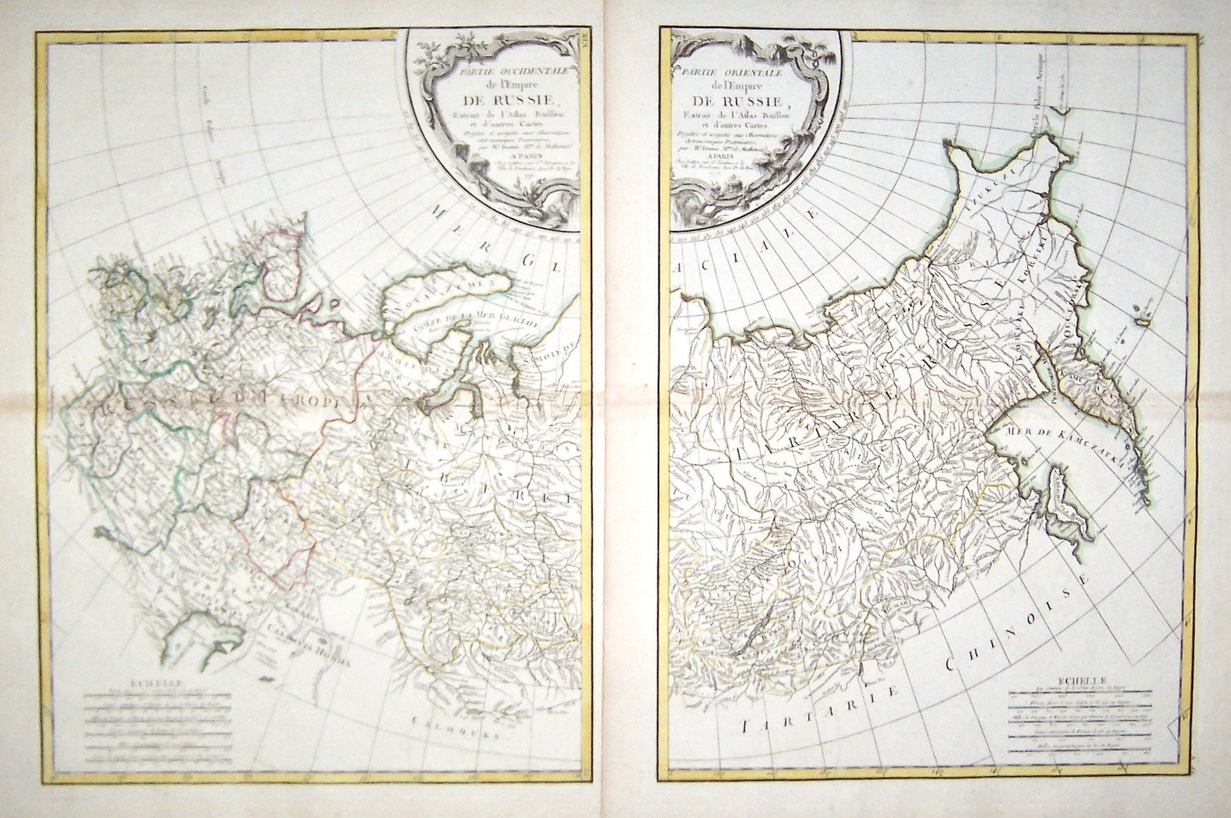 Incisione in rame, carta in due fogli da unire, ognuno 430x315. Piacevole carta dell'impero russo. Tratta da "Atlas moderne".