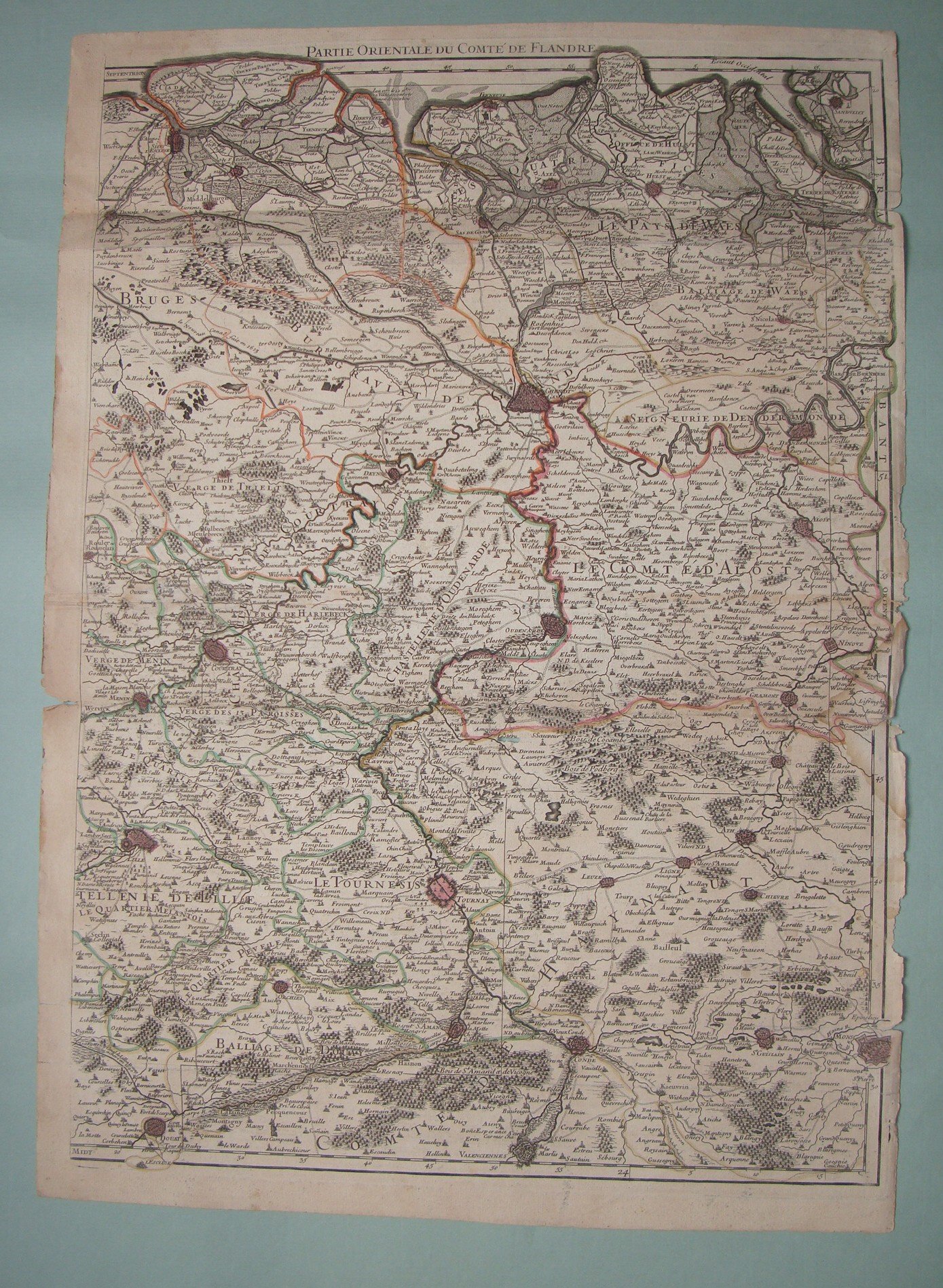 PARTIE ORIENTALE du Comté de Flandre. 1680 ca. Folding engraved map. Contemp. hand coloured in outline. Inches 28 3/4 x 20 (Cm. 73x51).