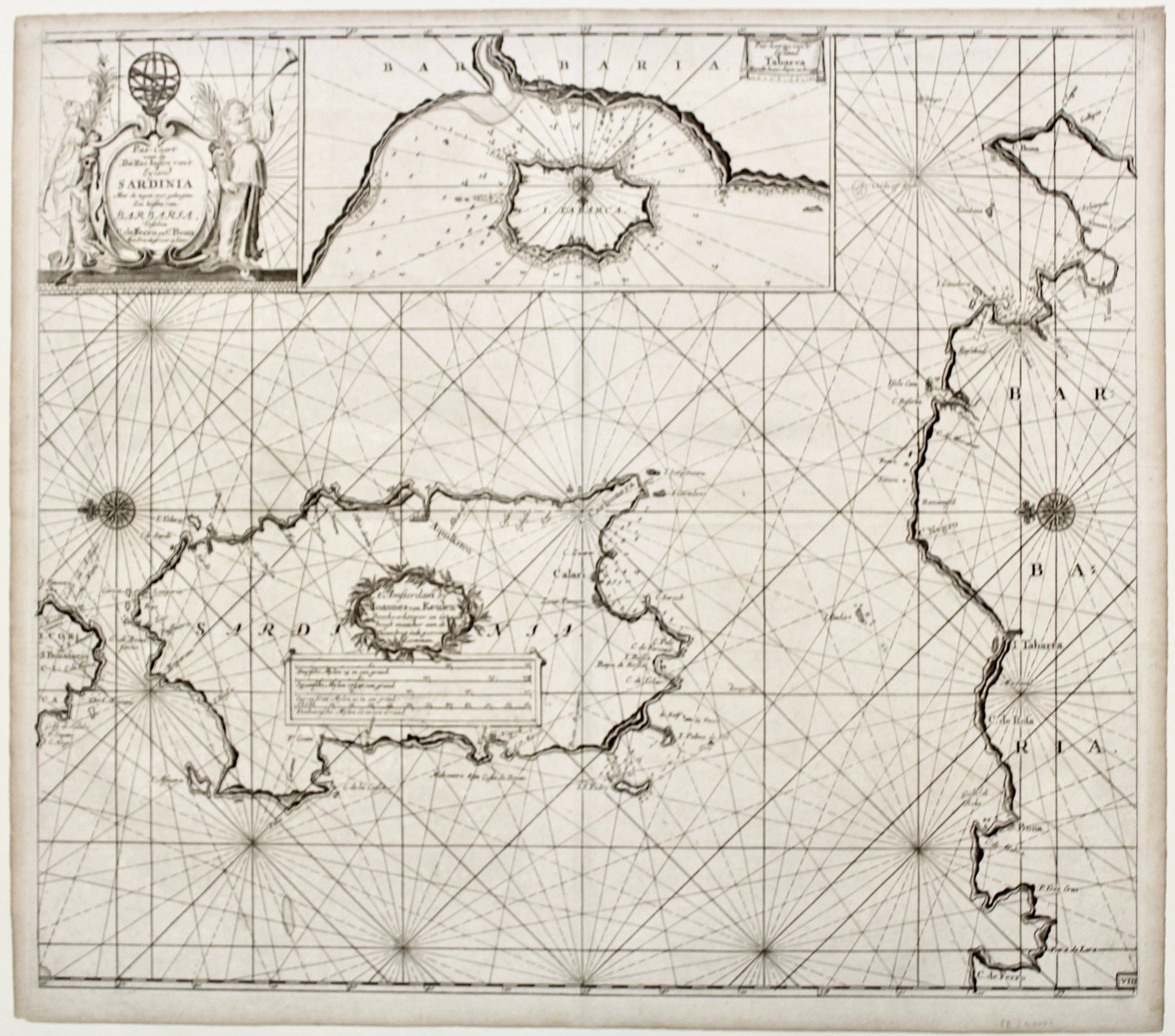 Pas-Caart van de zee kusten van't Eyland Sardinia met Barbaria…tusschen C. De Ferro en C. Bona.